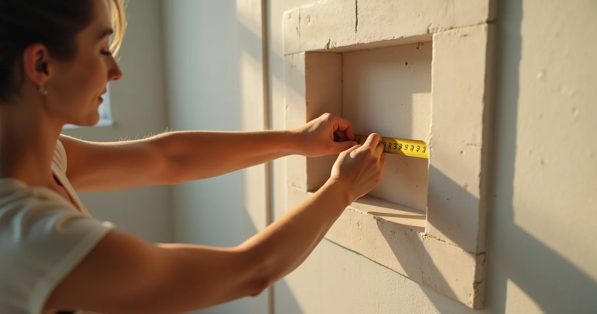 Antes de sair cortando, pegue a trena e defina a altura exata. A regra geral é começar o nicho entre 0,90m e 1,10m do chão. Use o nível de bolha e o lápis de carpinteiro para marcar as linhas de corte com precisão. Se for para alguém bem alto, pode subir um pouco, até 1,20m. Pense em quem vai usar!