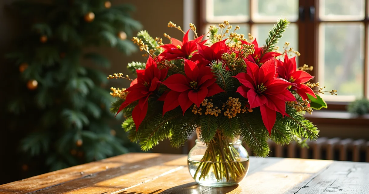 Vaso de Vidro com Poinsettias Artificiais