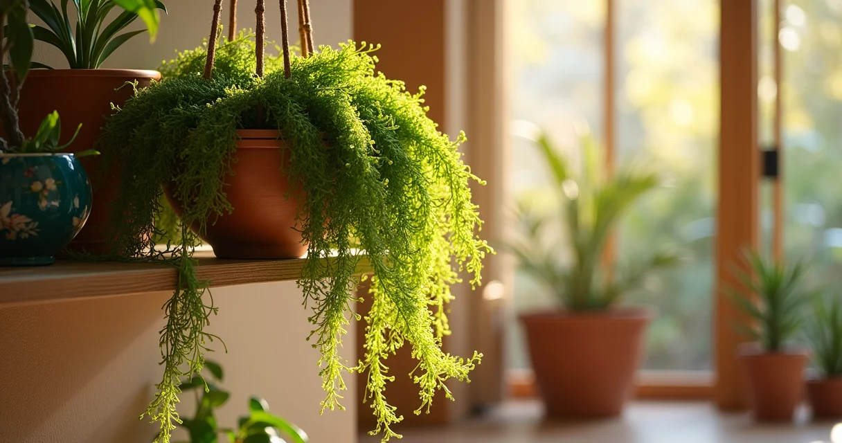Sol direto queima os filamentos finos, deixando-os marrons e ressecados. Em ambientes internos, uma janela com cortina fina é o local perfeito.