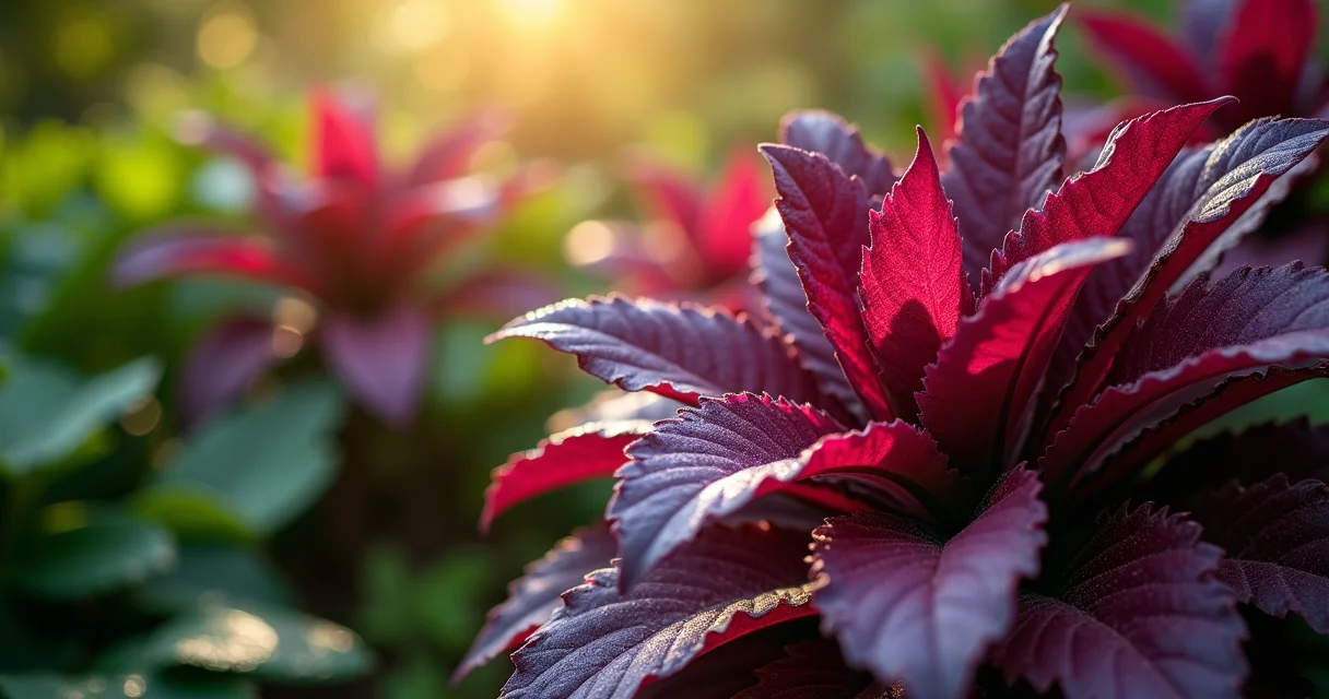 - Para tons intensos: Exponha Trapoeraba-roxa e Cóleus a pelo menos 4 horas de sol direto. A cor se aprofunda como um vinho tinto.