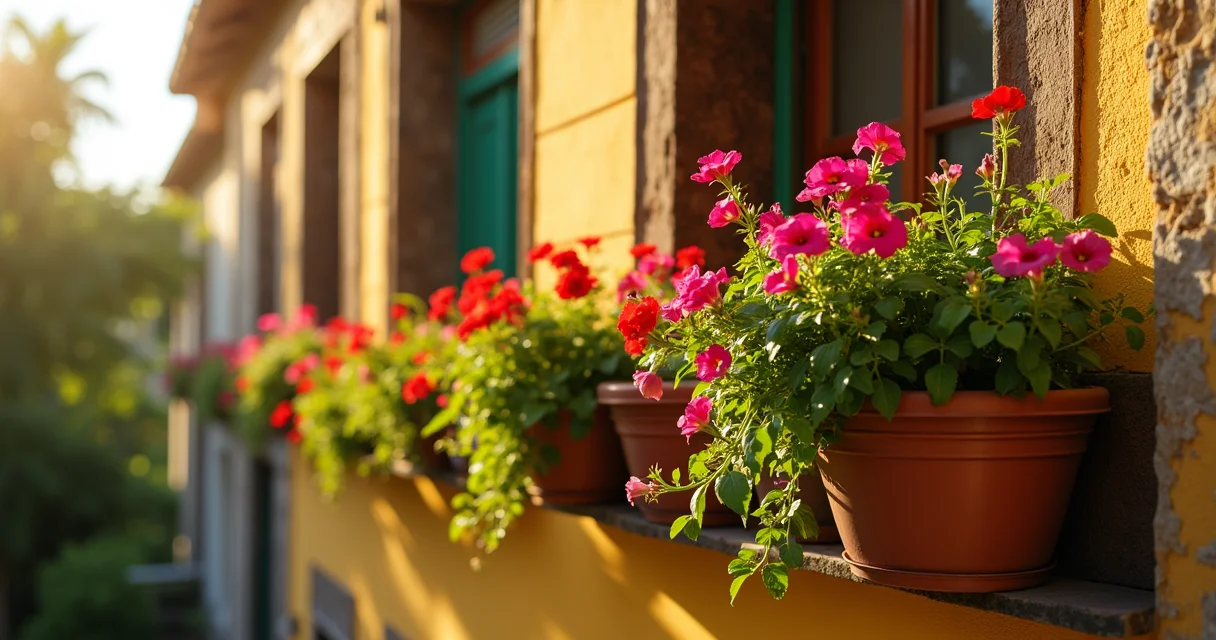 Plantas como a Onze-horas e o Rabo-de-burro são suculentas que resistem ao calor intenso com pouca água. Já a Petúnia e a Calibrachoa exigem regas frequentes para manter a floração abundante o ano todo.